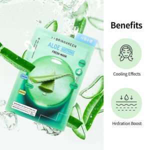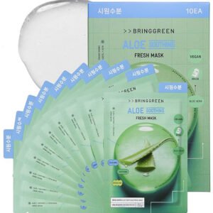 Bring Green Aloe Soothing Fresh Mask delivers instant hydration and relief to dry, irritated, or sun-exposed skin. Enriched with Jeju aloe extract, it deeply moisturizes while calming redness and restoring skin comfort. The lightweight essence absorbs easily without stickiness, leaving skin refreshed and smooth. Perfect for soothing sensitive or dehydrated skin, this mask provides a cooling, revitalizing finish for a healthy, supple glow.