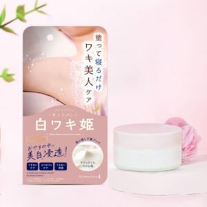 Himecoto Armpit Essence Cream a Japanese brightening and moisturizing cream to improve the tone and texture of dark or rough underarms. Infused with ingredients like arbutin, collagen, and hyaluronic acid, it helps reduce pigmentation while keeping the skin soft and hydrated. The lightweight, non-sticky texture absorbs quickly, making it ideal for daily use on all skin types, especially dull or uneven areas.