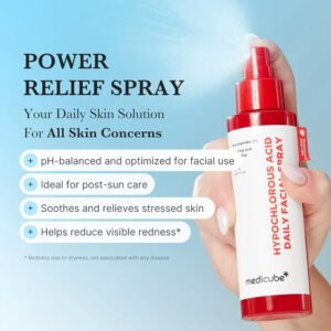 This mist uses 150 ppm of hypochlorous acid (HOCl) to soothe and purify the skin, supporting the skin’s defense barrier and calming irritation. The texture is a lightweight, no-rinse spray-mist you can use anytime — over makeup, post-workout or after cleansing. It also contains niacinamide (for skin tone/texture) and panthenol/allantoin (for soothing) so it’s more than just a mist. It is marketed as suitable for all skin types, including sensitive and acne-prone skin thanks to its fragrance-free and non-comedogenic formulation.